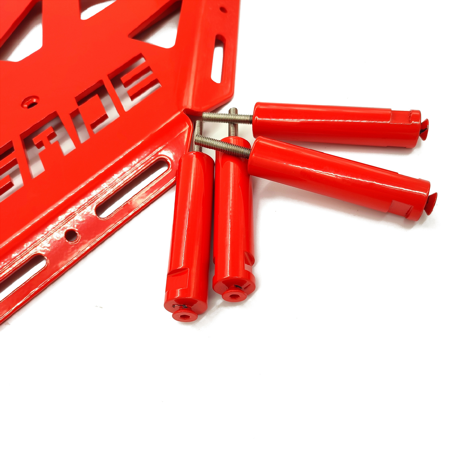 Bagażnik wykonany jest z blachy aluminiowej stopowej o pełnej grubości 5 mm, która została pomalowana proszkowo na czerwony kolor!