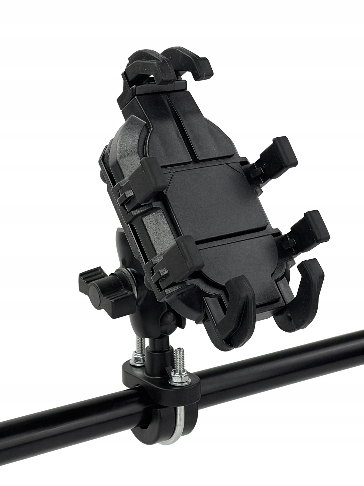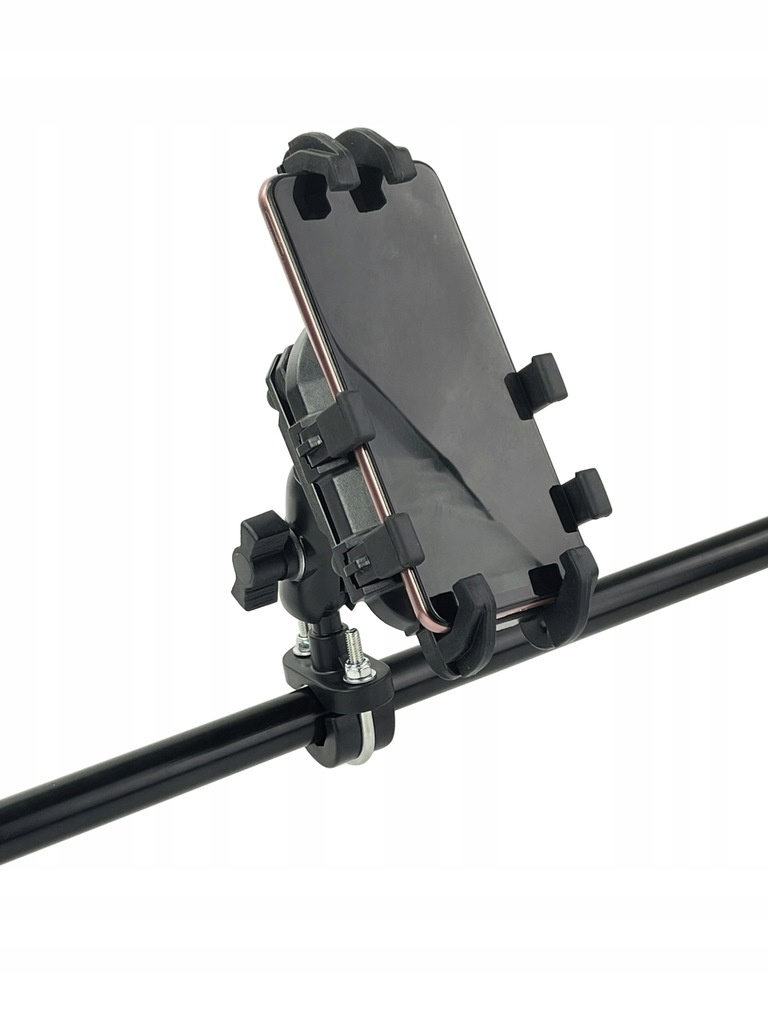 Uchwyt montowany na kierownicy – pasuje do różnych średnic rur. Montaż i demontaż zajmuje tylko chwilę, bez potrzeby użycia specjalistycznych narzędzi.